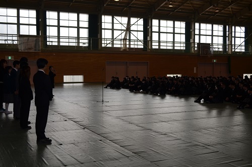 4月12日 船引高校生徒会長からの挨拶の後、船高生全員から温かい拍手をいただきました。対面式1.jpg 対面式2.jpg